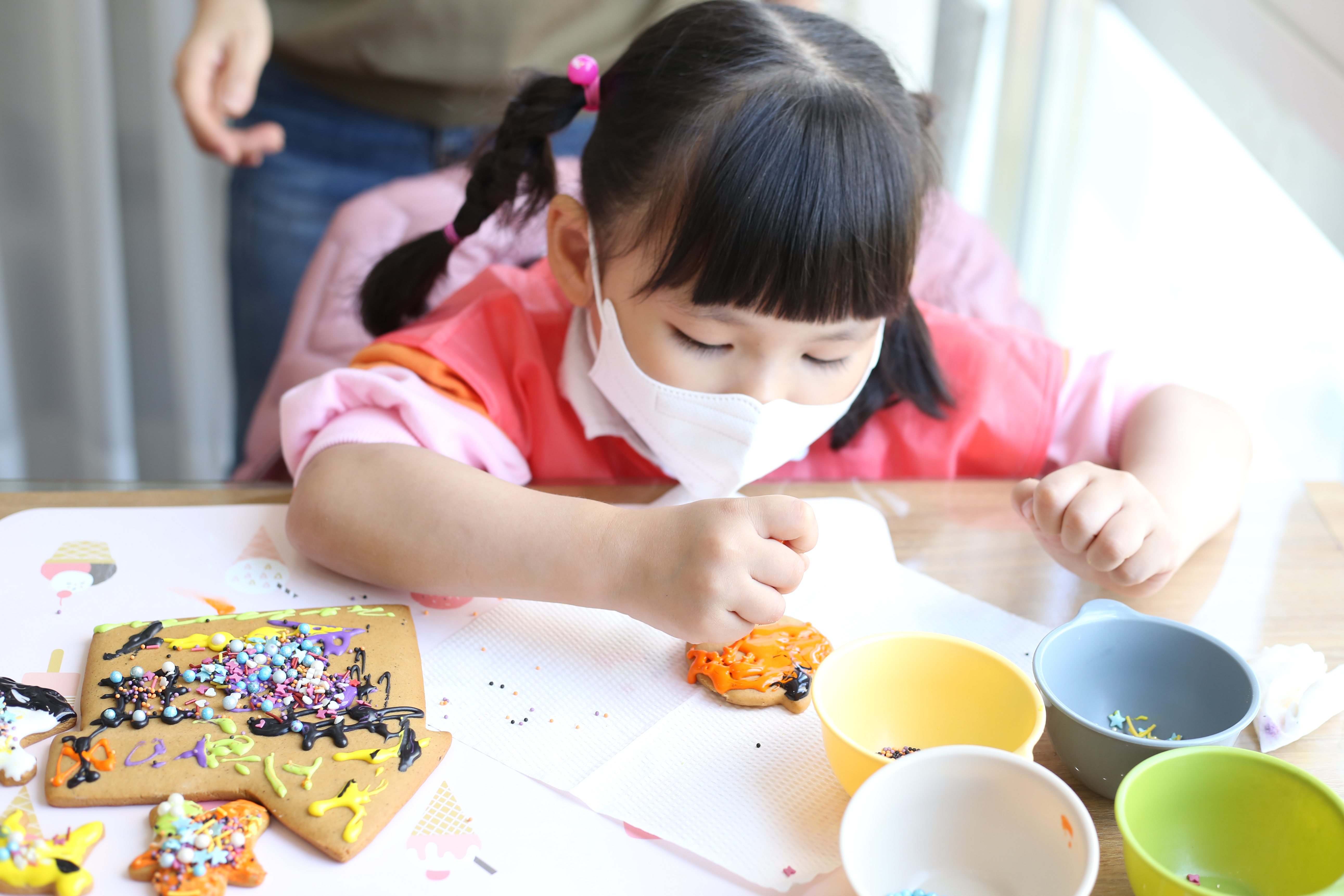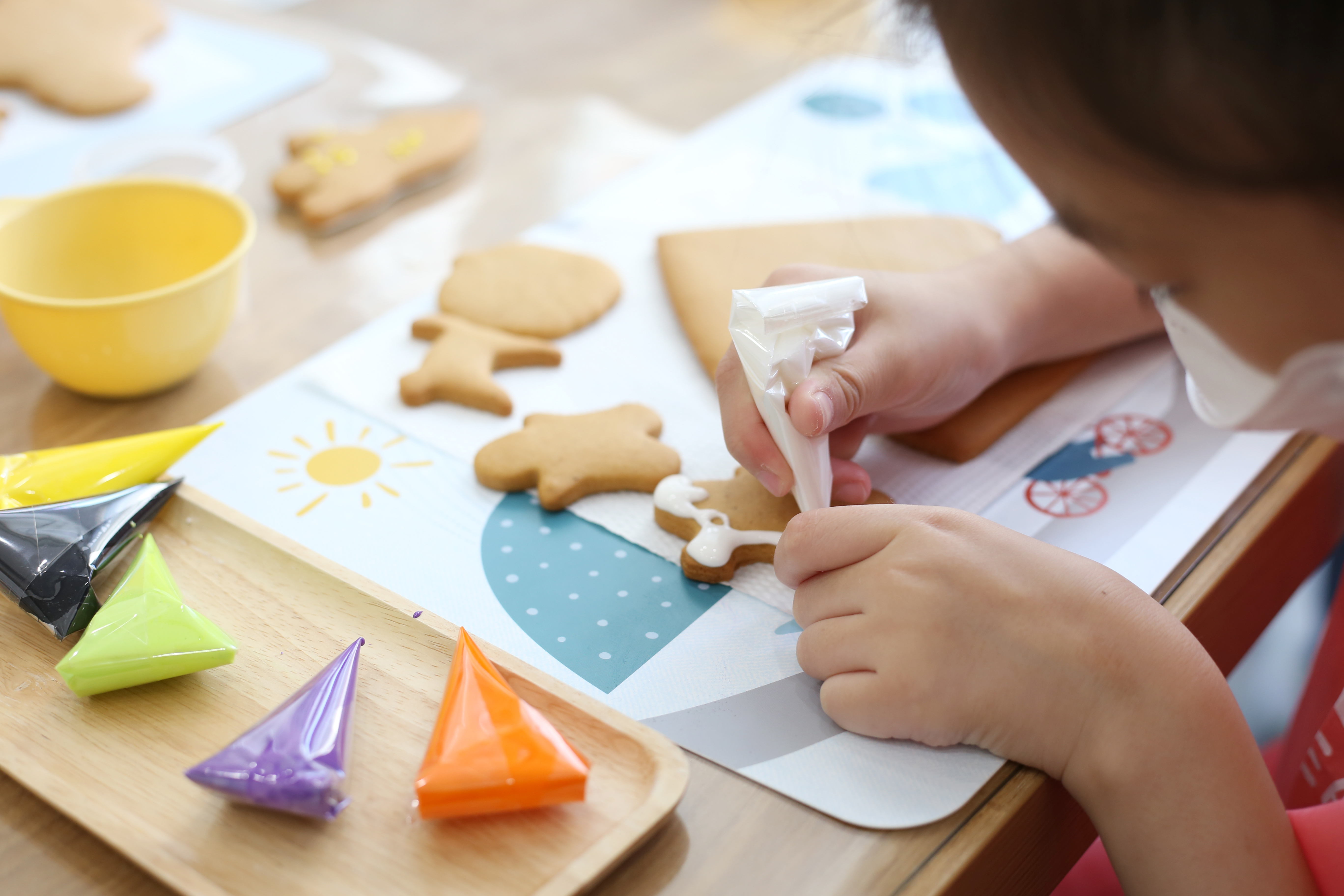원하는 색상의 아이싱을 골라 쿠키 위에 마음껏 뿌리고 꾸미고 장식해 보았답니다.